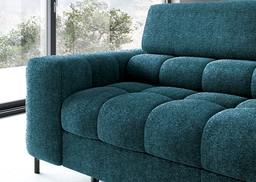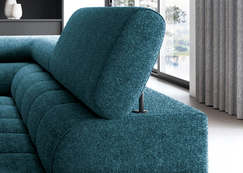 Njena impresivna širina 276 cm in globina 200 cm ustvarjata velikodušen prostor za sprostitev, nastavljivi nasloni za glavo in polno tapecirano hrbtno stran pa povečajo udobje pri vsakodnevni uporabi, branju ali druženju.