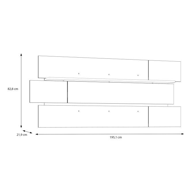 Dimenzije: širina 195,1 cm, višina 82,8 cm, globina 21,9 cm