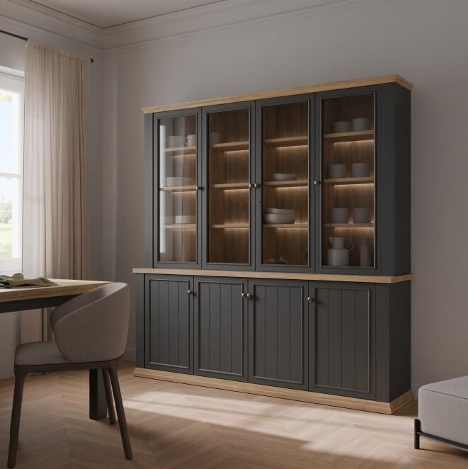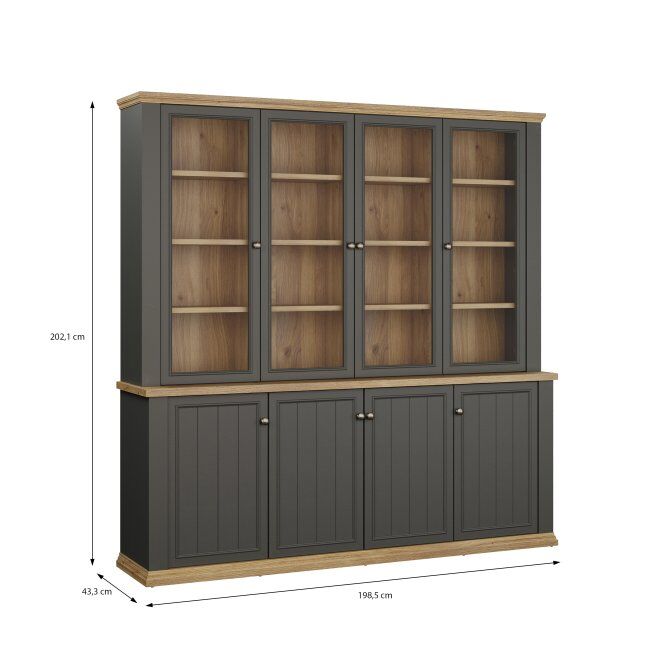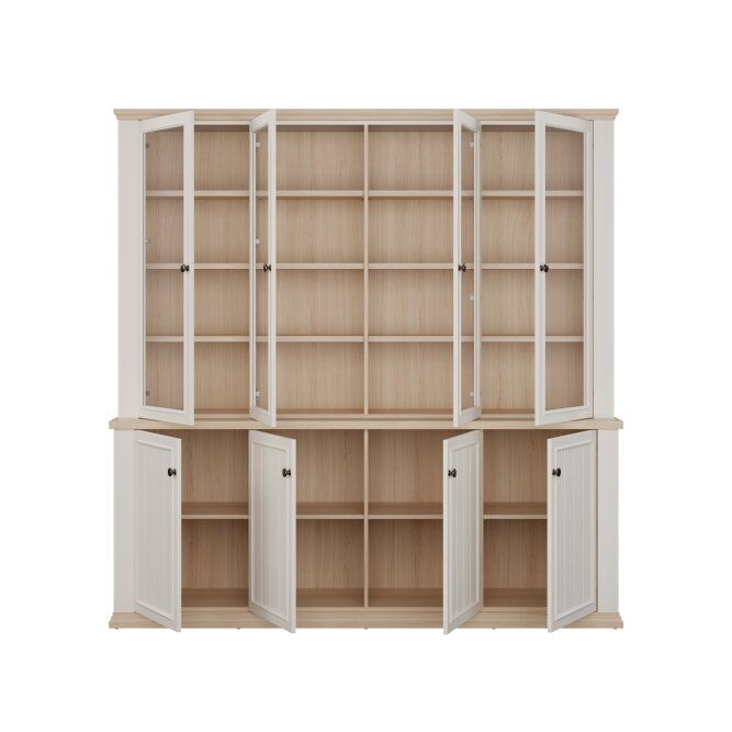 Opremljena je s 16 policami in ponuja veliko prostora za shranjevanje, prozorno, varnostno kaljeno steklo na štirih vratih pa omogoča razstavljanje vaših najljubših predmetov.
