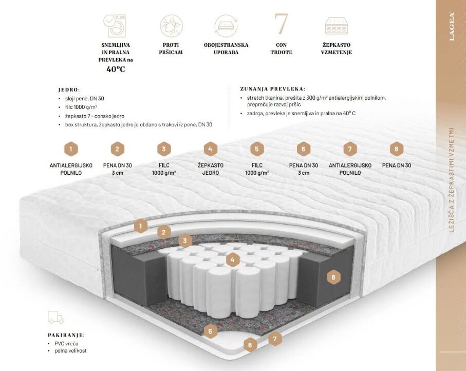 * možnost nabave tudi drugih dimenzij vzmetnice. (dolžine 190 ali 200 cm - širina 80,90,120,140,160,180 cm)