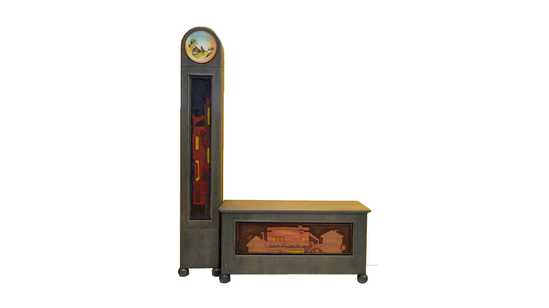 Regal ima dodano uro iz keramike. Vrhunski izgled, dobri materiali in ročna izdelava lesarskih mojstrov.
