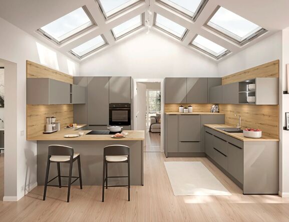 Kuhinjski sestav z otokom modernega izgleda.