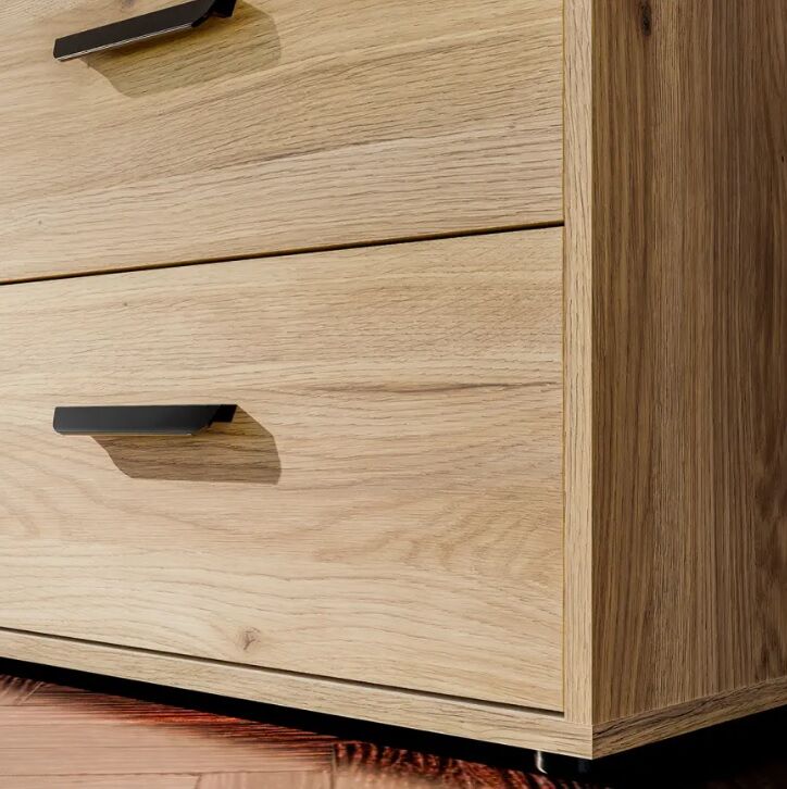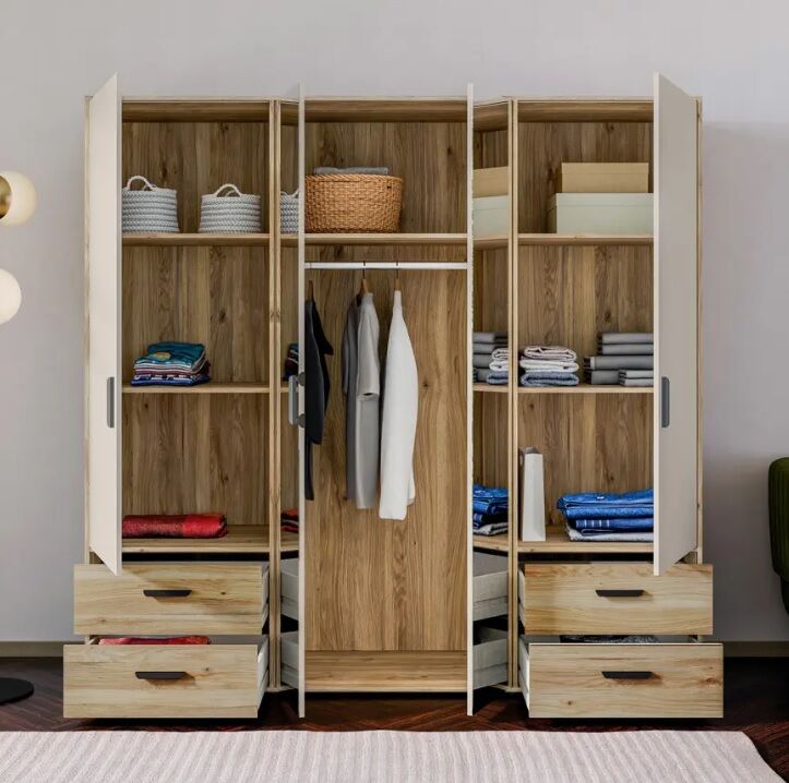 Ustvarite eleganten red z garderobo Mokkaro. Jasne linije, subtilne barve in elegantni ročaji v črni barvi poudarjajo brezčasen videz, ki se še posebej dobro ujema s trendovskimi koncepti opremljanja. Ta praktična in brezčasna omara vas bo navdušila.