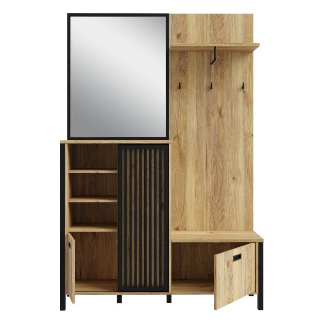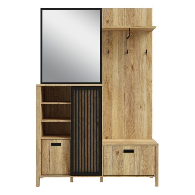 Ta kos pohištva se ponaša z osupljivo kombinacijo hrasta Maubella in črne barve.