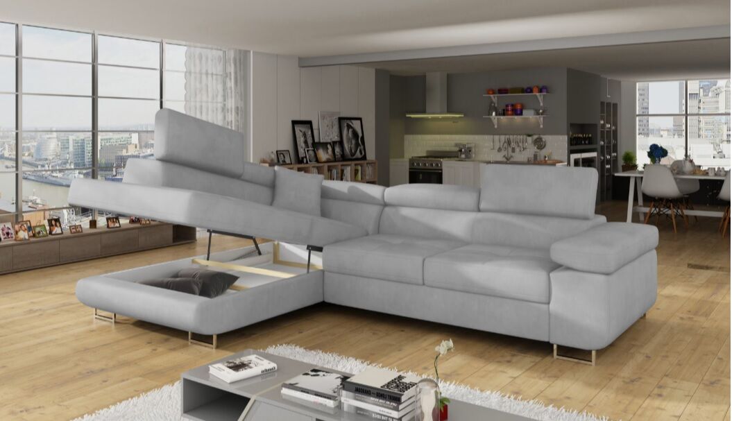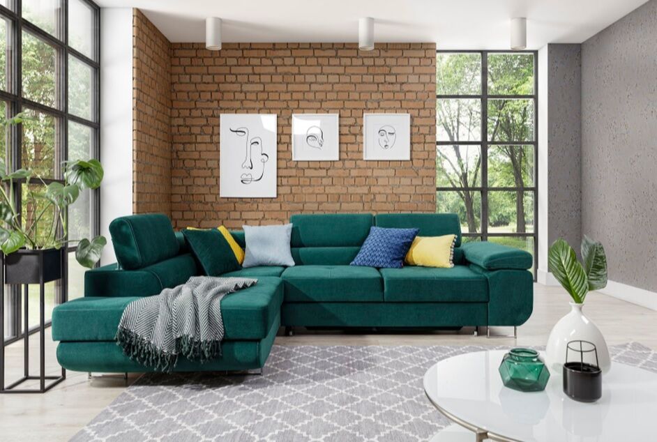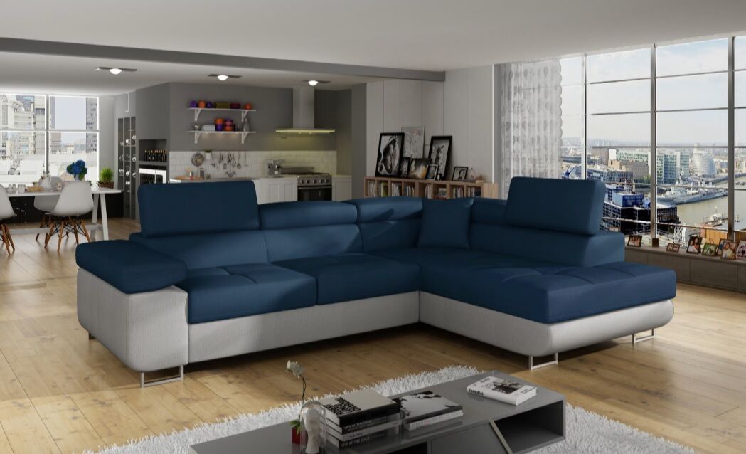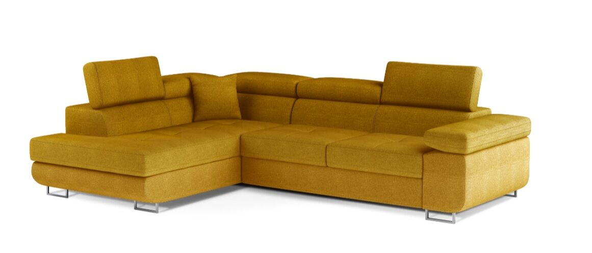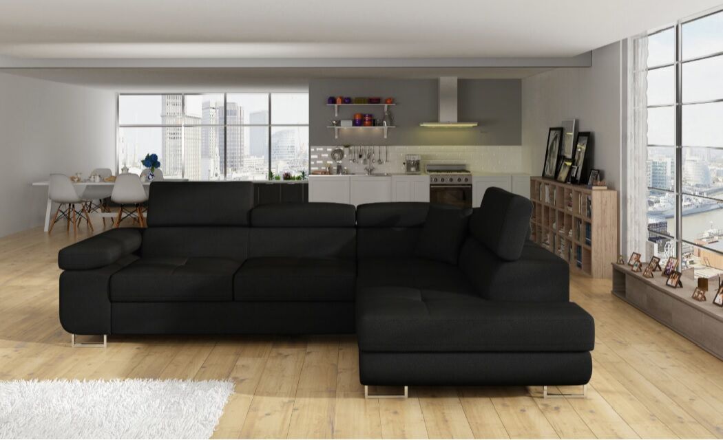 Anton je večnamenska in prostorna kotna sedežna garnitura z ležiščem, izdelana v modernem slogu. Je sinonim za visoko kakovost in maksimalno udobje, zahvaljujoč širokemu sedežu z globino 56 cm in izjemno elastični peni T3030. Anton, ki meri 272 x 203 x 85 cm in ima veliko spalno površino 123 x 210 cm, pomeni dober spanec. Pohištvo ima tudi velik predal za shranjevanje posteljnine. Na največji učinek zaznanega udobja med drugim vplivajo visoki, nastavljivi vzglavniki, široki nasloni za roke ter 9 cm visoke kovinske noge. Če vas zanima, kaj Anton še ponuja, vas spodbujamo, da izberete našo kotno sedežno garnituro z ležiščem.