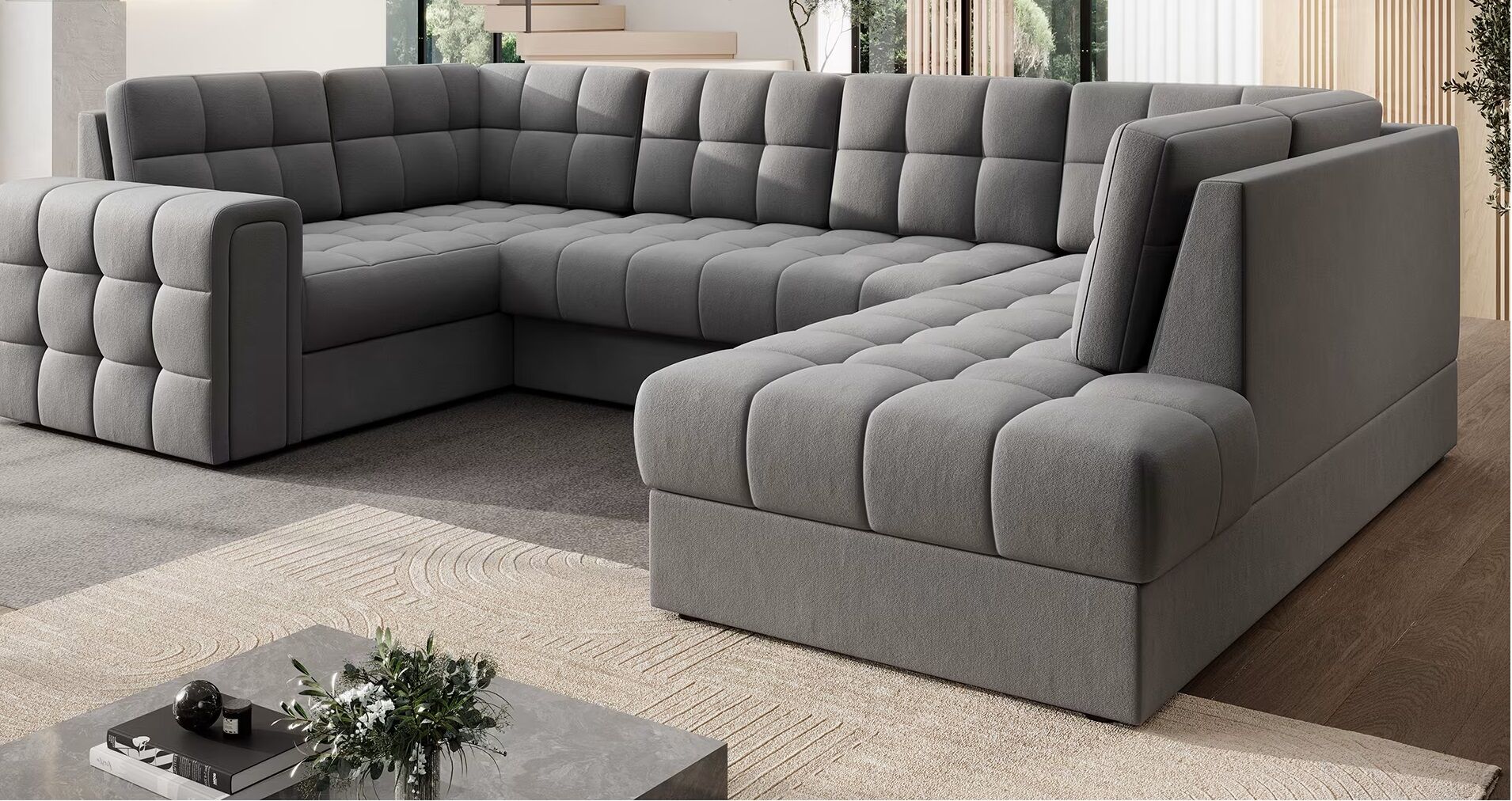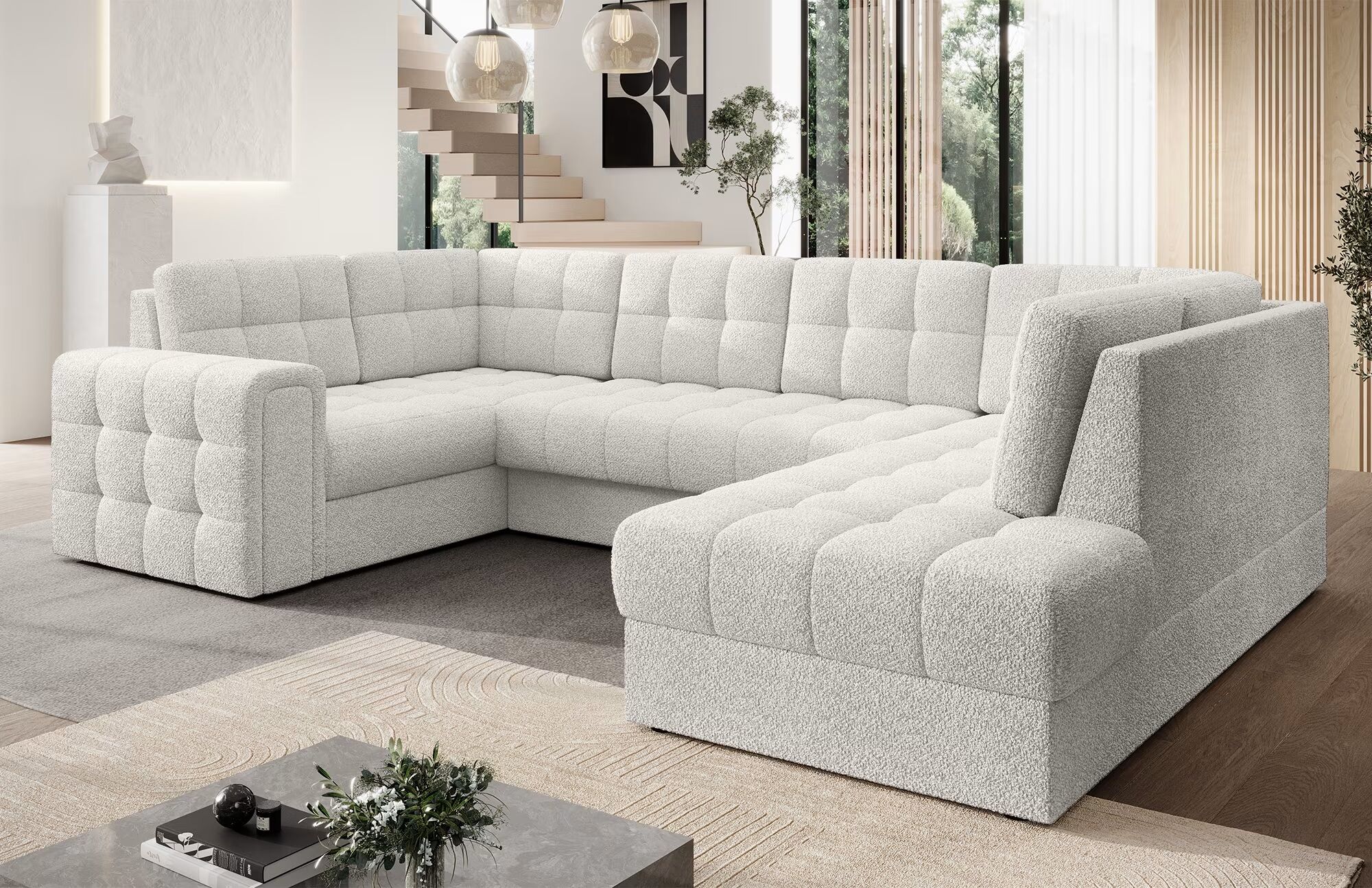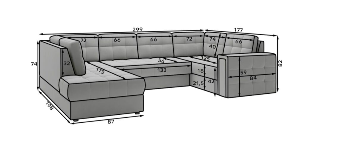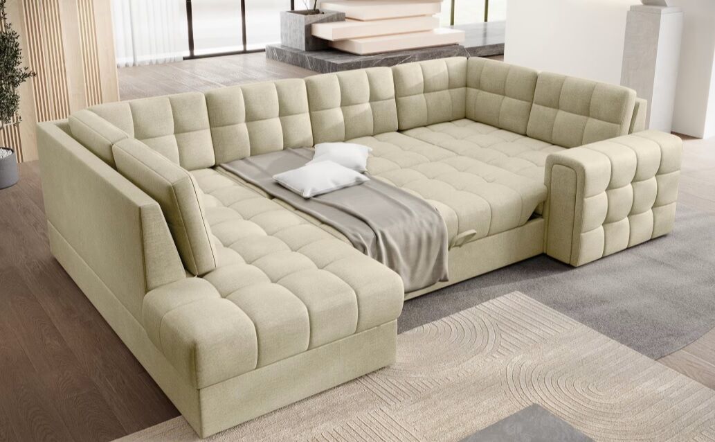 Sodoben kotni kavč s funkcijo spanja Blewett (299 × 198 × 82 cm) je popolna izbira za vse, ki želijo združiti eleganco, udobje in praktičnost v svoji dnevni sobi. S svojim premišljenim dizajnom in kakovostno izdelavo nudi vrhunsko izkušnjo tako pri sedenju kot pri počitku.