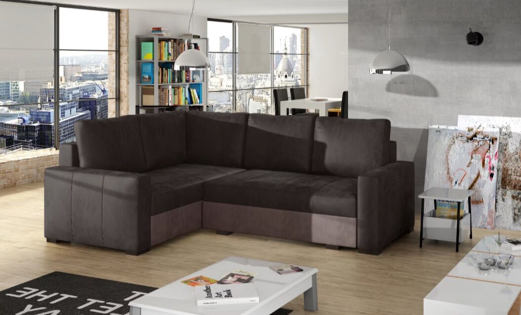 Corona je eleganten, klasičen in hkrati udoben ter eleganten kotni kavč z raztegljivim ležiščem z dimenzijami 235 x 162 x 90 cm. Med njegove odlike spadajo: stabilna, preizkušena konstrukcija, umirjen videz in udobni sedeži iz bonnella in pene T3040, ki sta odporna na deformacije in poškodbe. Ta vrsta pene zagotavlja tudi pravilno oporo telesu in drži. Kotni kavč z raztegljivim ležiščem Corona je večnamenski kos pohištva - saj njegova zanesljivost in izjemna mehkoba zagotavljata maksimalno udobje ne le podnevi, ampak tudi ponoči. Po razgrnitvi kavča z zložljivim dnom pridobite spalno površino velikosti 195 x 135 cm in prostoren, globok prostor za shranjevanje posteljnine. Če iščete funkcionalen, a hkrati klasičen in eleganten kos pohištva - je izbira preprosta - kotni kavč z raztegljivim ležiščem Corona bo odgovor na vse vaše potrebe.