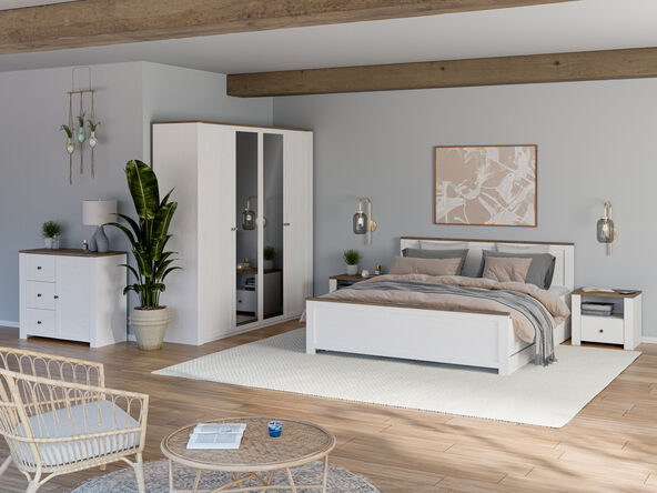 Naše spalnice so zasnovane v pomirjujočih barvnih tonih: bela, bež, siva, rjava in naravni les, ki ustvarjajo harmonično vzdušje in se odlično kombinirajo z različnimi dekorji.